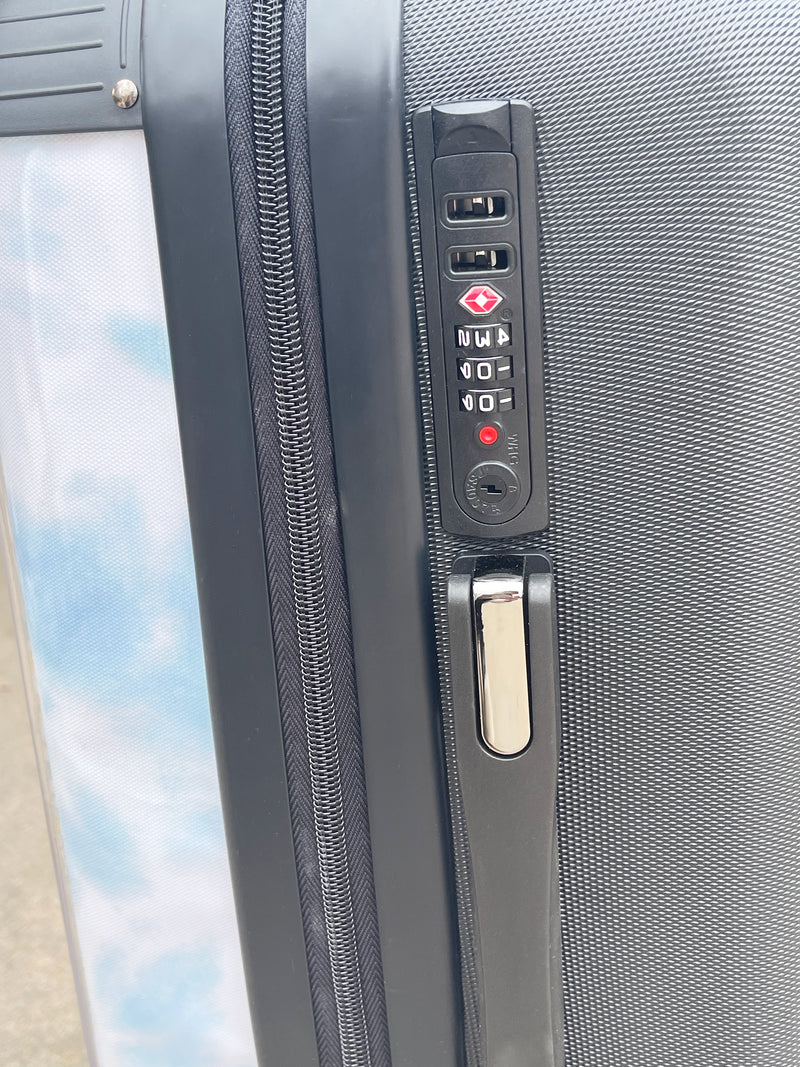 The design is printed under a clear layer of polycarbonate which protects the design from dirt, fading, scratches, etc. Even if you choose a light colored suitcase, the design will not be affected. :)